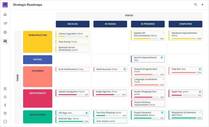 Who’s doing what? Track tasks by assigning roadmap items to specific people.